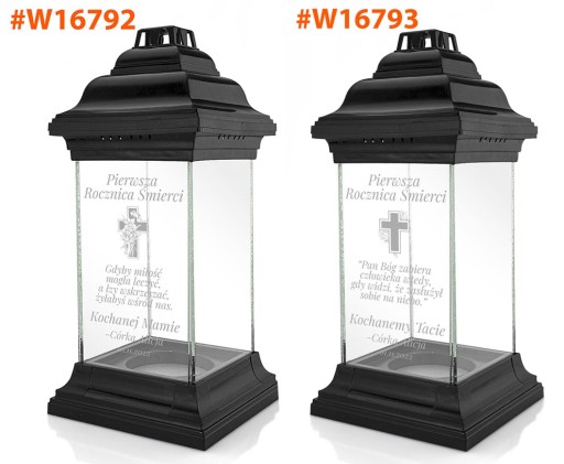 Znicz wykonany został z transparentnego szkła, podstawa z tworzywa sztucznego. Przystosowany do różnych rozmiarów wkładów, ze stabilną podstawą i daszkiem zabezpieczającym przed wiatrem.