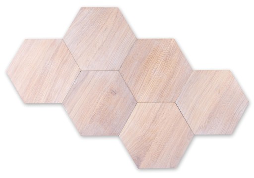 HEKSAGONY MAXI W KOLORZE DĄB BIELONY WYKONANE W CAŁOŚĆI Z DREWNA DĘBOWEGO