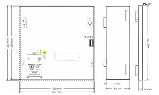 - Zabezpieczenia: tamper – otwarcie obudowy