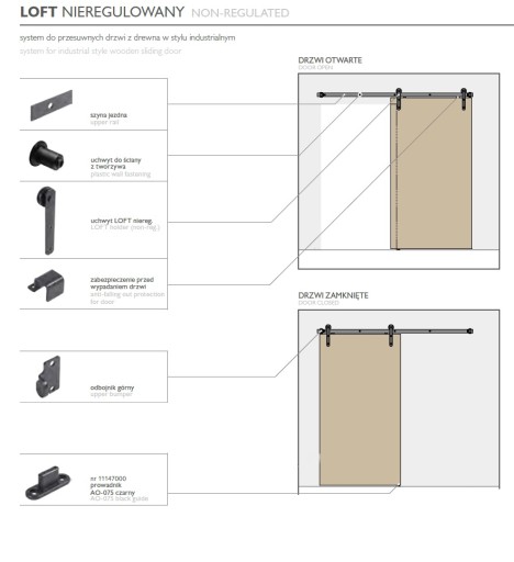 Drzwi przesuwne LOFT nadają wnętrzu niepowtarzalny charakter , sprawdzają się w każdym wnętrzu. System do drzwi przesuwnych LOFT odpowiada najnowszym trendom w aranżacji wnętrz. Nadaje każdej przestrzeni unikatowy i indywidualny charakter. Przeznaczony jako system do drzwi przejściowych między pomieszczeniami, w szczególności do jadalni, salonu czy gabinetu. Można zastosować go również jako element dekoracyjny na ścianę.