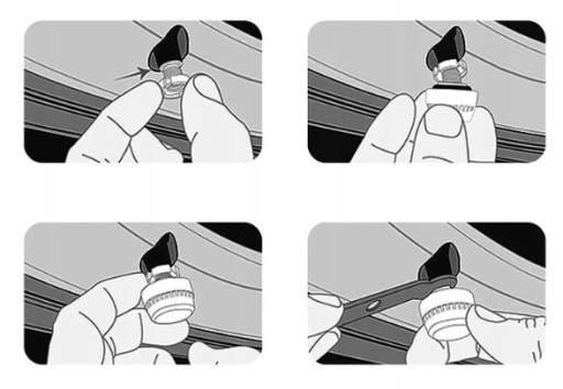 1. Po zdjęciu oryginalnych nakrętek na wentyle nakręć antykradzieżową nakrętkę z zestawu
