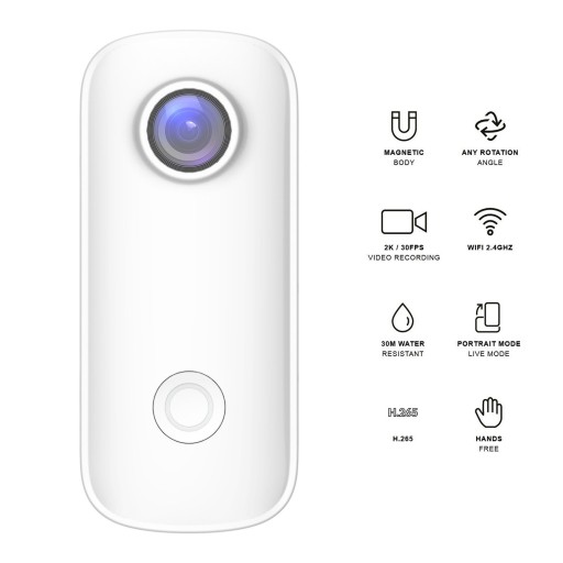 Wodoodporność 30 M: Zaprojektowana dla użytkowników, którzy kochają pływanie, surfowanie i inne sporty wodne. Po prostu zejdź pod wodę z wodoszczelną obudową i odkrywaj nowe horyzonty z kamerą sportową C100+.