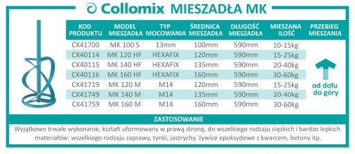 Znajdują się także w zestawie ze wszystkimi mieszarkami ręcznymi Collomix. Idealnie dopracowany kształt pozwala dobrze przygotować niemal 75% typów zapraw budowlanych.