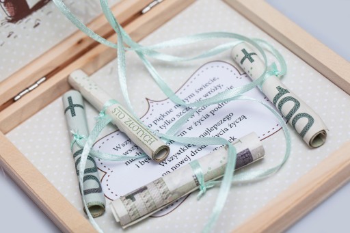 GWARANTUJEMY, że nawet po wyciągnięciu pieniędzy pudełko spełnia walory dekoracyjne i jest wspaniałą pamiątką - może być wykorzystywane np. do przechowywania płyty CD ze zdjęciami z uroczystości.