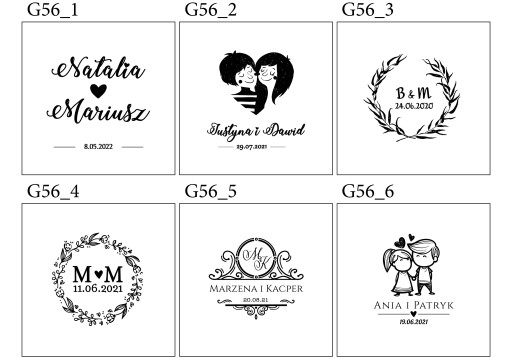 - Imiona Państwa Młodych i datę ślubu: np. Kasia i Marcin, 20.10.2024