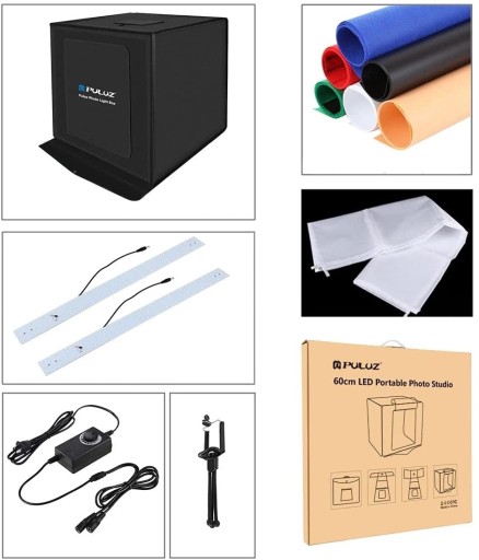 Dwa zintegrowane paski świetlne o wysokiej jakości diód LED SMD i mocy 60 W, jasności 3380 ( 2 x 1690) lm dają profesjonalne rezultaty niewielkim nakładem pracy. Ponadto jasność można regulować dzięki czemu łatwo osiągać różne efekty świetlne jednym ruchem ręki. Od dziś będziesz mógł bez trudu robić zdjęcia bezcieniowe o studyjnej jakości. Sześć różnych kolorów tła, przenośna konstrukcja to dodatkowe argumenty, że nasze rozwiązanie to najlepiej dopracowana tego typu konstrukcja na rynku w rozsądnej cenie