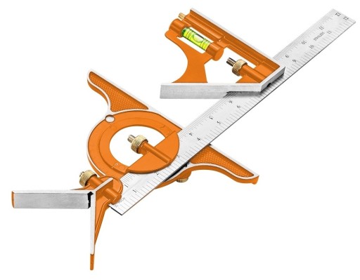 Może pełnić wiele funkcji: kątownik, liniał, przymiar, głębokościomierz, poziomnica.