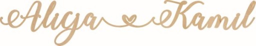 Napis na ściankę Pary Młodej w postaci imion, wykonany z wysokiej jakości sklejki brzozowej o grubości 3 mm w naturalnym kolorze.