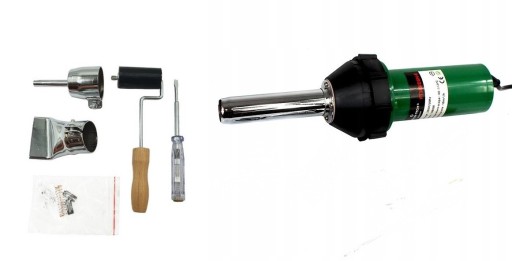 Zestaw do spawania tworzyw sztucznych przeznaczony do prac wymagających użycia strumienia gorącego powietrza. Urządzenie wykorzystuje się między innymi do osuszania, rozklejania, odkształcania, usuwania farb i lakierów, łączenia rur lub innych profili z plastiku.