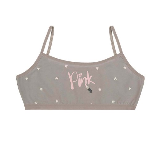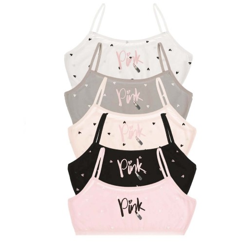 Śliczny zestaw 5 sztuk biustonoszy dziecięcych z nadrukowanym uroczym motywem szminki. W zestawie staniczki w pięciu cudownych kolorach. Produkty oferowane przez LILLY BLING są świetnej jakości. Bielizna wykonana z wysokogatunkowej bawełny, miękka, praktyczna, niecisnąca! Idealna na zajęcia sportowe jak również na co dzień.