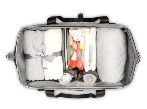 Dzięki specjalnym uchwytom można w wygodny sposób zamocować torbę na rączce wózka. Pozwala to na trzymanie najpotrzebniejszych rzeczy pod ręką i szybki dostęp do nich. W zestawie dołączony jest też pasek do noszenia torby na ramieniu, dzięki czemu w łatwy sposób zmienisz funkcjonalność torby.