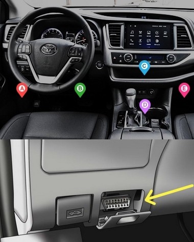 Obok zdjęcie gniazda OBD2, jeżeli takie posiadasz to iCar PRO jest dla Ciebie. Jeżeli masz inne gniazdo to sprawdź nasze pozostałe aukcje. tam znajdziesz Interfejsy diagnostyczne z dedykowanymi adapterami OBD1.