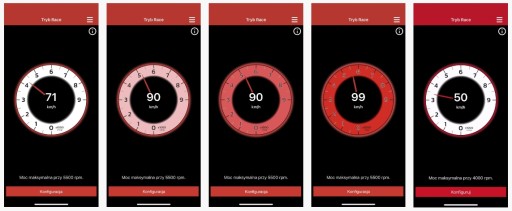 Aby poprawnie skonfigurować tryb Race należy wprowadzić wartość obrotów, przy których samochód osiąga swoją moc maksymalną