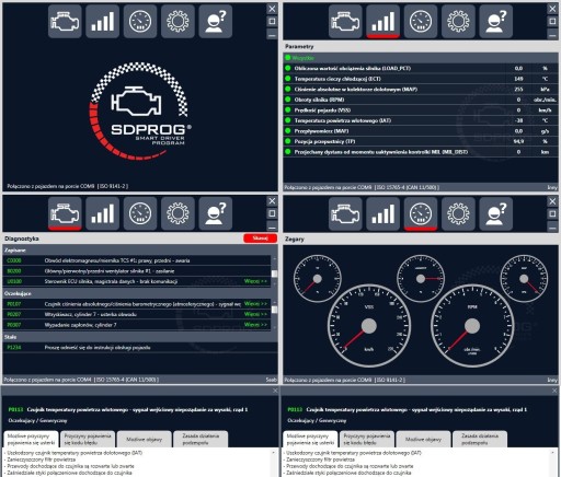- SDPROG umożliwia monitorowanie znacznie większej ilości parametrów i analizowanie ich na różne sposoby (liczby, zegary, wykresy), czego nie zapewniają darmowe programy.