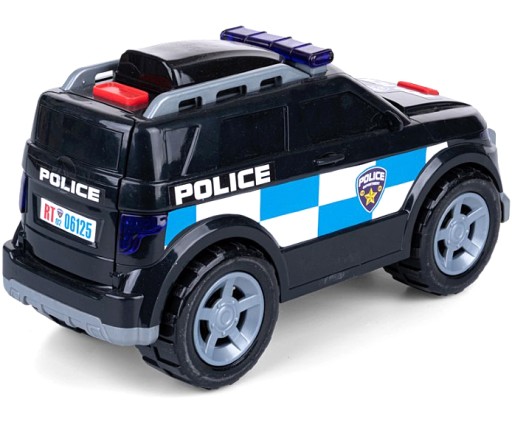 Pojazd doskonale odzwierciedla prawdziwy terenowy wóz policyjny, ma 34 cm długości i utrzymany jest w czarnej kolorystyce. Wóz wydaje sygnał świetlny i dźwiękowy - prawdziwa frajda dla malucha!
