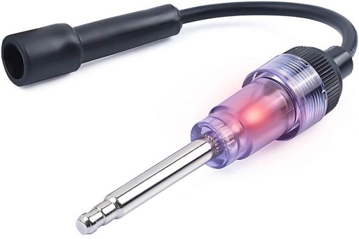 Tester do sprawdzania układu zapłonowego. Urządzenie pozwala w łatwy sposób zdiagnozować uszkodzenia cewki zapłonowej oraz sprawdzić jakość i siłę iskry w świecy zapłonowej. Tester podłączany pomiędzy kabel wysokiego napięcia, a świecę zapłonową.