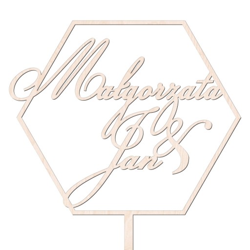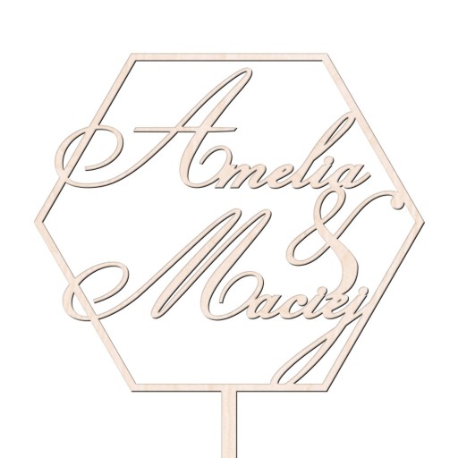 Topper Imiona Pary Młodej - sześciobok heksagon - ślub i wesele - 2 dowolne imiona
