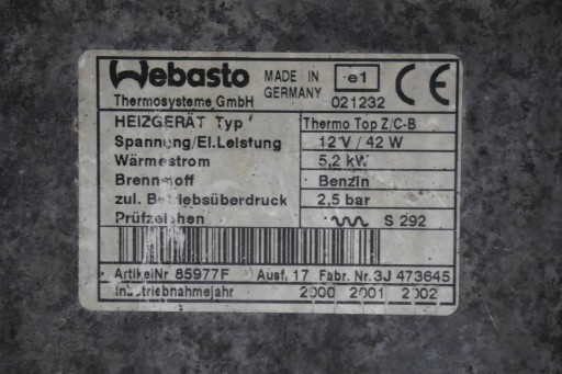 WEBASTO OGRZEWANIE POSTOJOWE