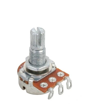 Potencjometr, najczęściej stosowany jako potencjometr głośności w gitarach z przystawkami typu Single Coil (jednocewkowe).