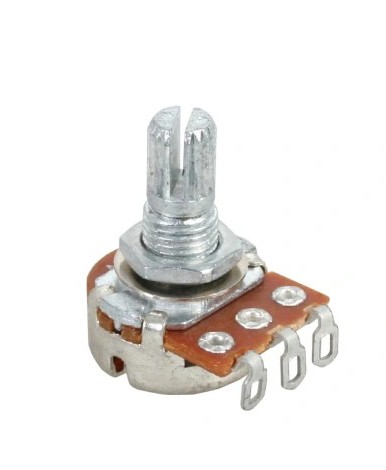 Potencjometr do gitary, najczęściej stosowany jako potencjometr głośności w gitarach z przystawkami typu Single Coil (jednocewkowe).