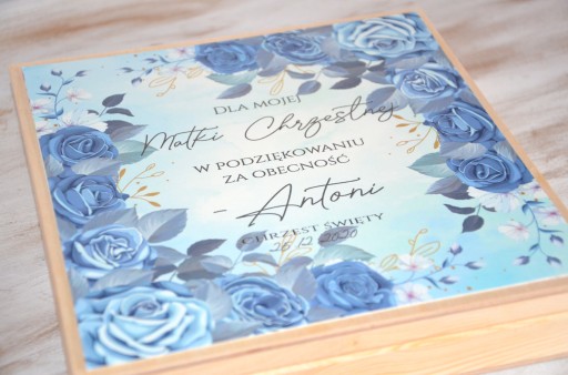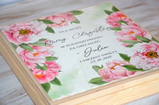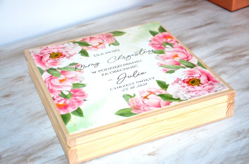 Drewniana skrzyneczka 20 x 20 cm + spersonalizowany nadruk, zdjęcie