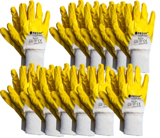 RĘKAWICE ROBOCZE OCHRONNE ŻÓŁTE POWLEKANE NITRYLEM PROOF CITRA ROZ. 9-12PAR