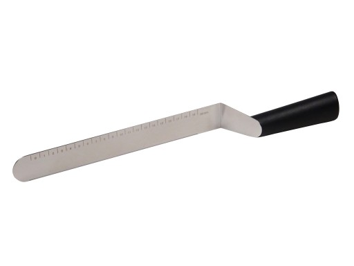 - Stalowa szpatuła kuchenna do prac cukierniczych o długości 39 cm i szerokości 3,5 cm.