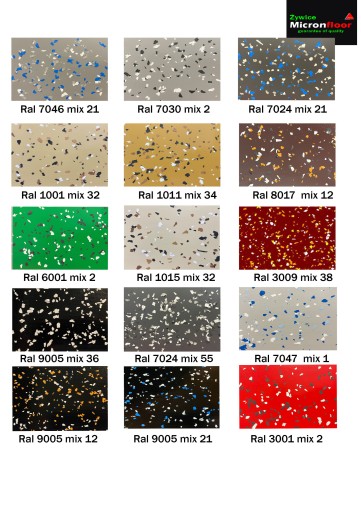 Możliwe jest też wybranie i skomponowanie własnego zestawu koloru ral żywicy z kolornika poniżej z dowolnym mixem płatków z kolornika powyżej.