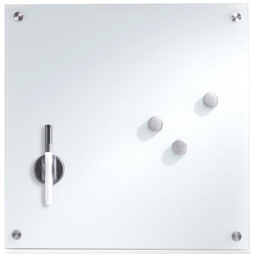 SZKLANA TABLICA MAGNETYCZNA, BIAŁA 40x40 3 magnesy