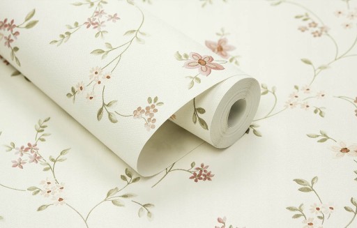 - Drobny i delikatny deseń z ukwieconych gałązek. Ta tapeta z powodzeniem sprawdzi się we wnętrzach urządzonych w stylu angielskim, prowansalskim.