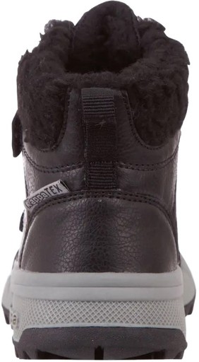 Dziecięce śniegowce Kappa wyposażono w wodoodporną membranę KappaTEX chroniącą przed dostawaniem się wilgoci do wewnątrz. Dziecięce buty zimowe w stonowanej kolorystyce posiadają grubą podeszwę z głębokim bieżnikiem co zapewnia dobrą przyczepność w trudnych warunkach. Wnętrze cholewki dodatkowo wyścielono miłym w dotyku meszkiem zwiększającym komfort termiczny.