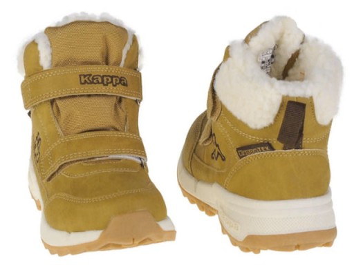 Dziecięce śniegowce Kappa wyposażono w wodoodporną membranę KappaTEX chroniącą przed dostawaniem się wilgoci do wewnątrz. Dziecięce buty zimowe w stonowanej kolorystyce posiadają grubą podeszwę z głębokim bieżnikiem co zapewnia dobrą przyczepność w trudnych warunkach. Wnętrze cholewki dodatkowo wyścielono miłym w dotyku meszkiem zwiększającym komfort termiczny.