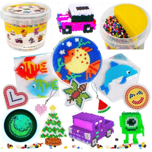 Zestaw 5000 szt. koralików wraz z akcesoriami sprawia, że dziecko chętnie układa i bawi się. Tworzenie ślicznych, kolorowych, bajecznych obrazków o różnych kształtach stanie się prawdziwą pasją. A możliwości jest wiele - dziecko może utworzyć różne postacie, zwierzątka a nakładając kilka warstw szablonu może stworzyć figurki 3D.