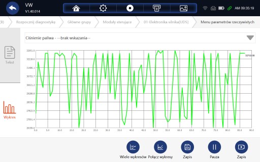- podgląd parametrów rzeczywistych (także w postaci wykresów i wskaźników: kilka trybów)