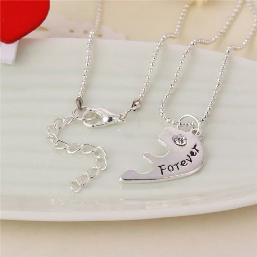 Podzielony na 3 części tworząc razem jedno piękne serce ozdobione cyrkoniami z napisem " BEST FRIENDS FOREVER ".
