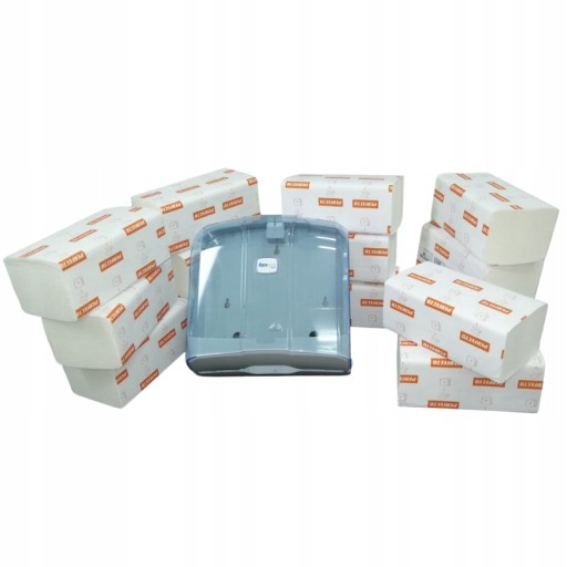 Ręczniki papierowe typu ZZ 2000 sztuk + pojemnik na ręczniki papierowe ZZ DK031 o nowoczesnym wyglądzie