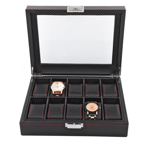 Pudełko zmieści 10 zegarków - delikatnych, masywnych czy sportowych (o szerokości koperty do 5cm - w innym wypadku zegarki mogą stykać się ze sobą)