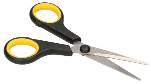 - Nożyczki III – Długość całkowita: 250 mm, Długość ostrza: 100 mm, Materiał: stal nierdzewna, tworzywo sztuczne, Kolor: czarny, żółty.