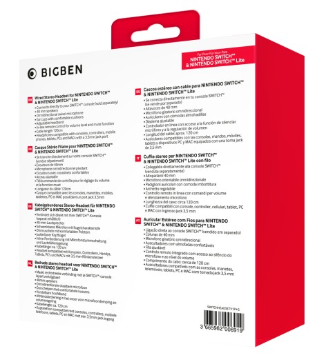 BIGBEN PRZEWODOWE SŁUCHAWKI DO NINTENDO SWITCH i NINTENDO SWITCH Lite