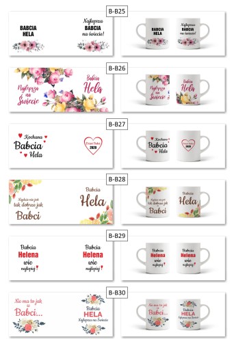 Wybierz jeden z naszych szablonów i ofiaruj ukochanej Babci personalizowany kubek z Jej imieniem!