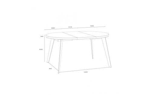 Stół TBLT7001 z okrągłym blatem, stół po rozłożeniu ma 155 cm szerokości.
