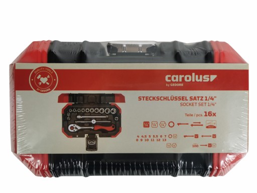 - Kompaktowy zestaw nasadek Carolus by Gedore 1/4" jest zawiera szereg 6-punktowych nasadek od 4 mm do 13 mm