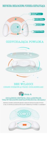 Środek poduszki jest wykonany z pianki, która nie wytwarza żadnego nacisku i nie ma ciśnienia. Dzięki temu, główka dziecka jest cały czas w odpowiedniej i bardzo wygodnej pozycji.