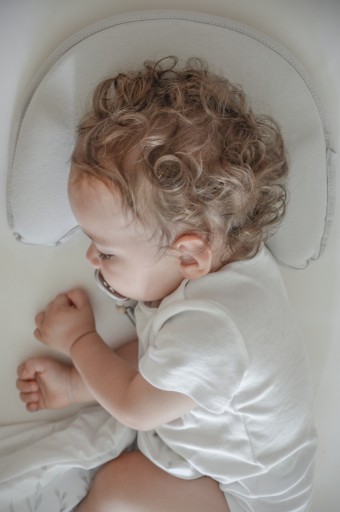 - Poduszka redukuje nacisk główki dziecka na podłoże, co sprawia, że zapobiega spłaszczaniu się główki oraz leczy już powstałe zniekształcenia.