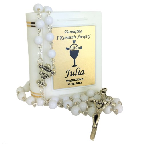 RÓŻANIEC DO PIERWSZEJ KOMUNII ŚWIĘTEJ – PERSONALIZOWANY/WERSJA BIAŁA