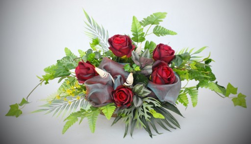 Duża, bogata, piękna wiązanka na grób bardzo dobrej jakości, sztucznych dodatków florystycznych.