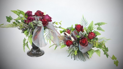 - 5 dużych róż w kolorze bordowym, które do złudzenia przypominają żywe,