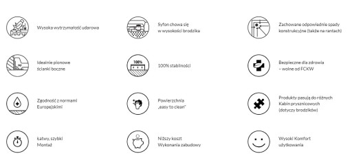 - gładka powierzchnia o trwałym połysku ułatwiająca utrzymanie brodzika w czystości