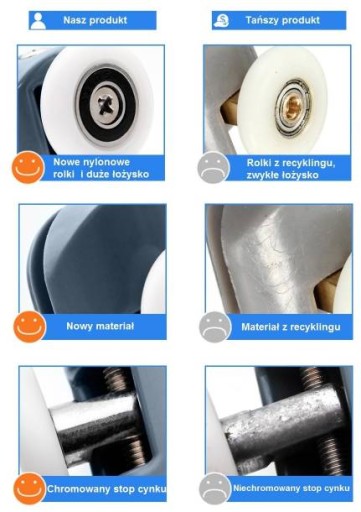 - Pasują do większości kabin prysznicowych, na których zostały zastosowane łożyska kulkowe