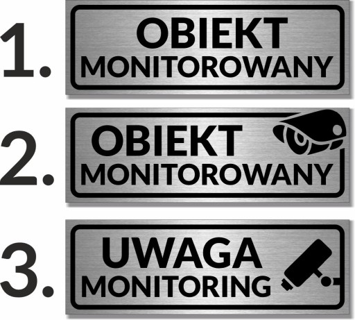 TABLICZKA "MONITORING" 30x10 cm. WYKONANA Z DIBONDU SZCZOTKOWANEGO SREBRNEGO, Z GRAFIKĄ NANIESIONĄ Z FOLII PLOTEROWEJ. BARDZO TRWAŁA I ELEGANCKA
